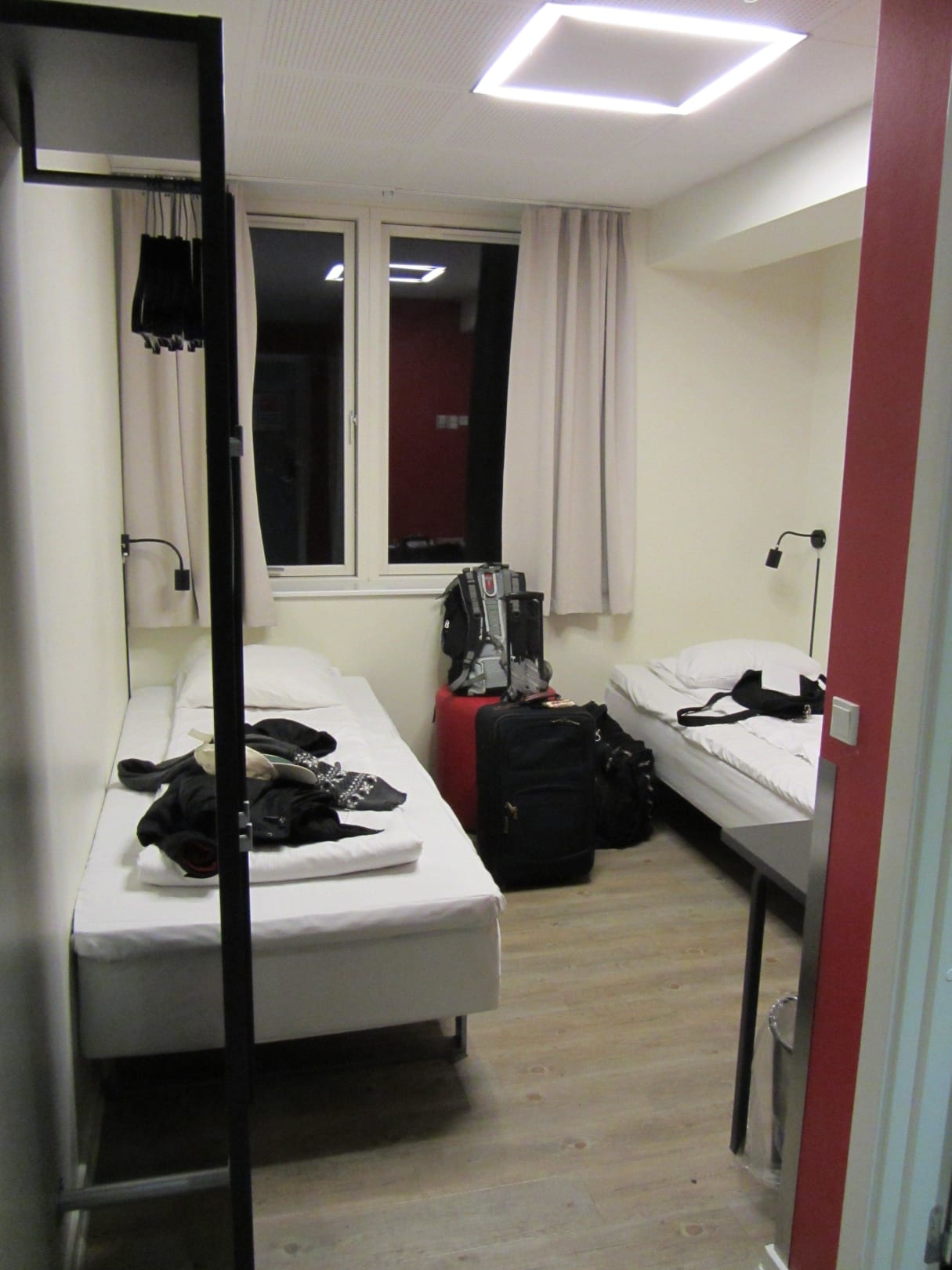 Twin beds, clean room, spartan