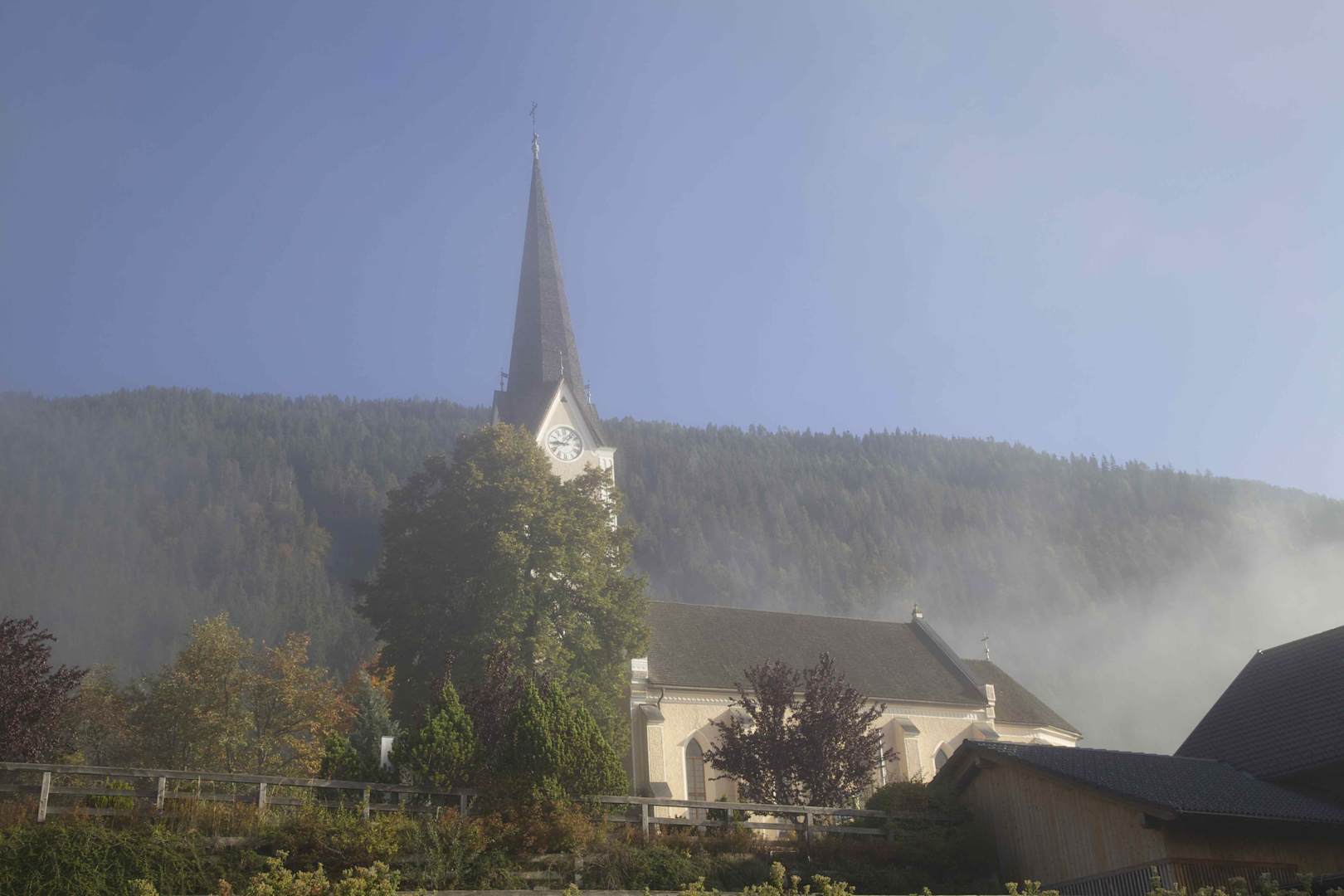 Blick vom Hotel auf die Ortskirche von Techendorf