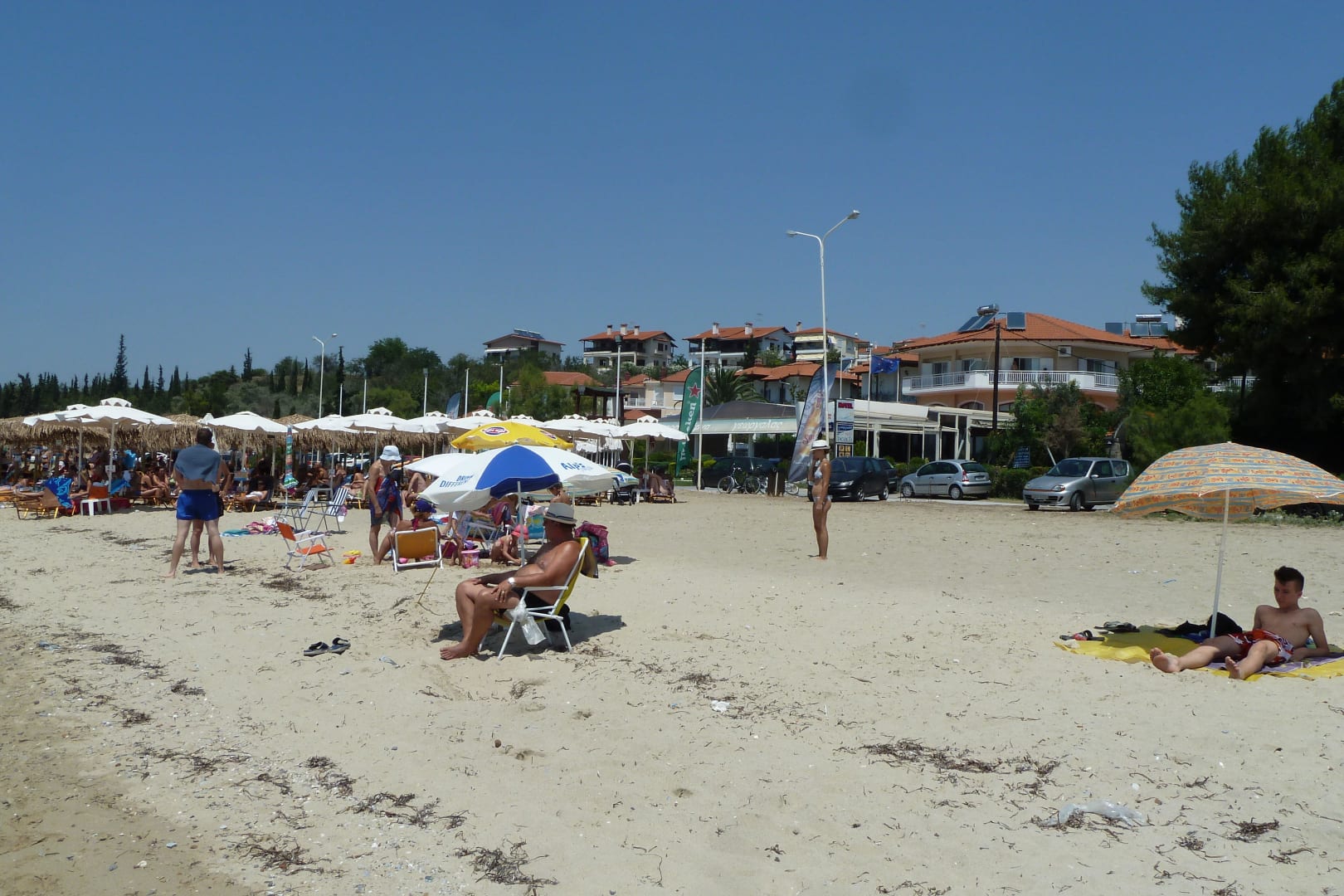 Hotel - Sonnenschime und Liegen, vorne privat