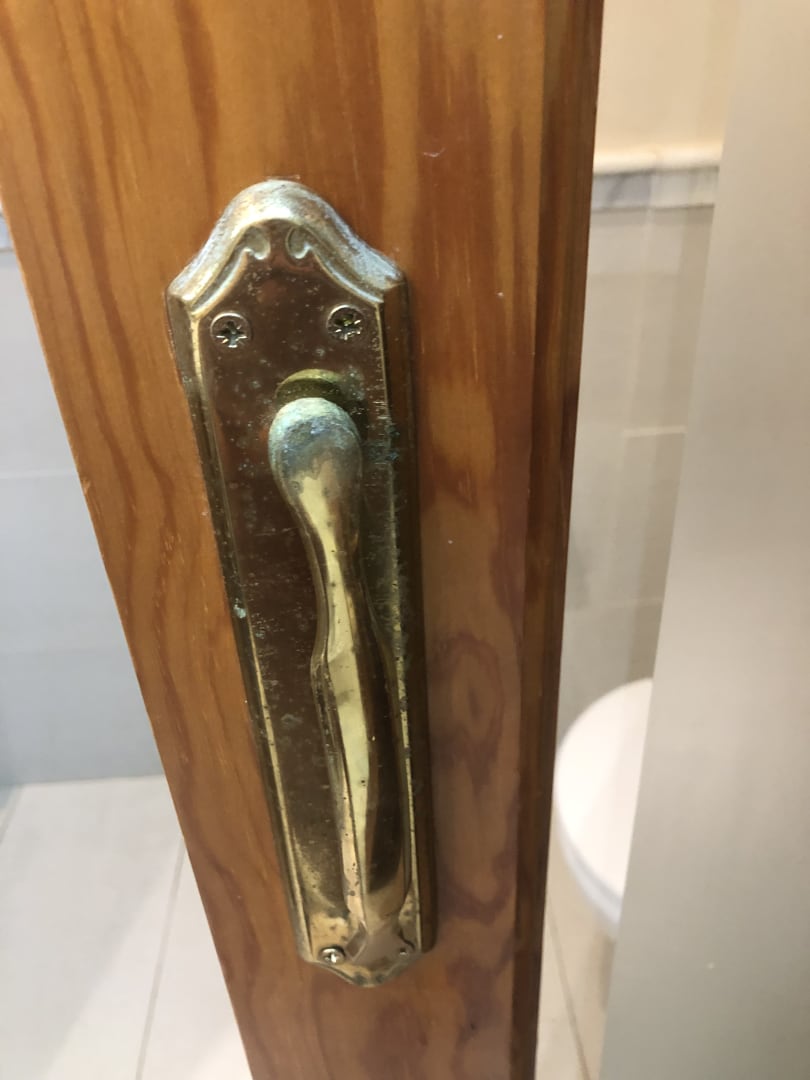 Im Bad Türgriff mit Grünspan