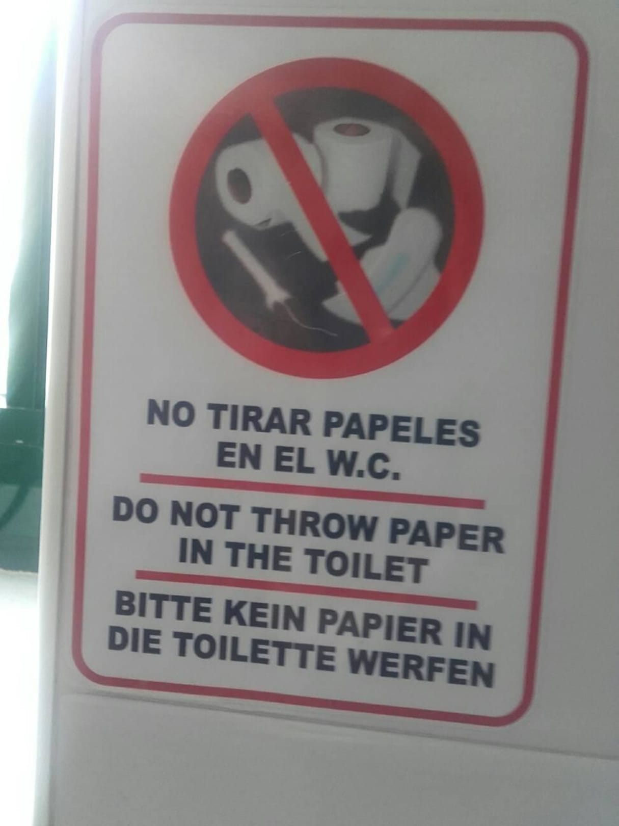 Kein Klopapier in die Toilette, ein Witz