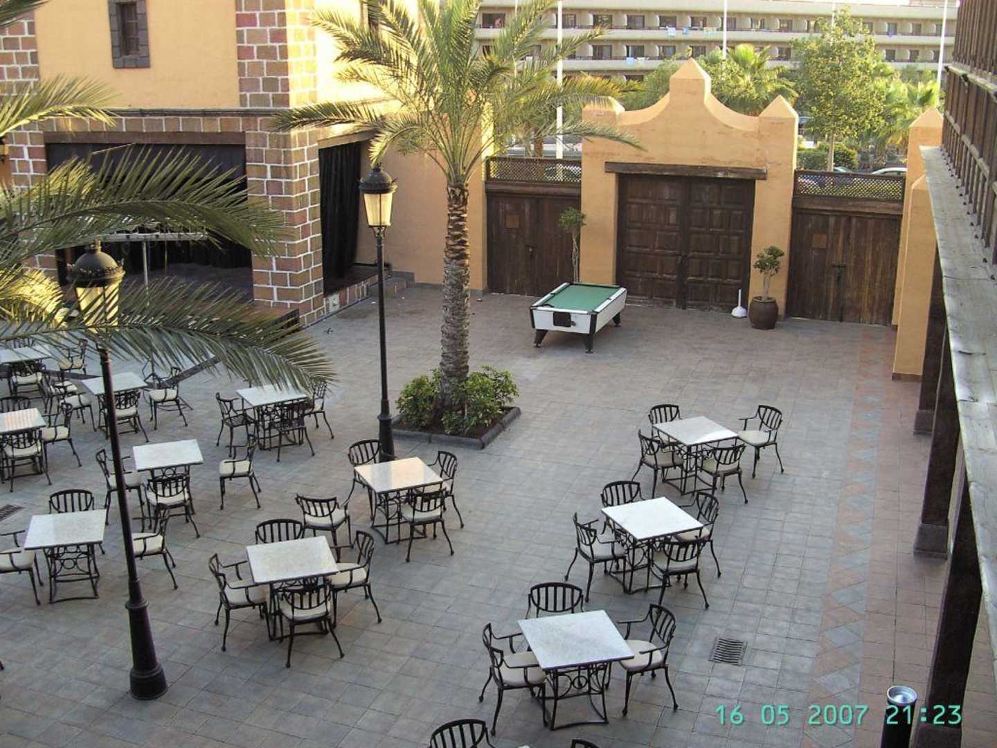 Frühstücks-PatioFrühstücken unter wenig Palmen, trotzdem gemütlich