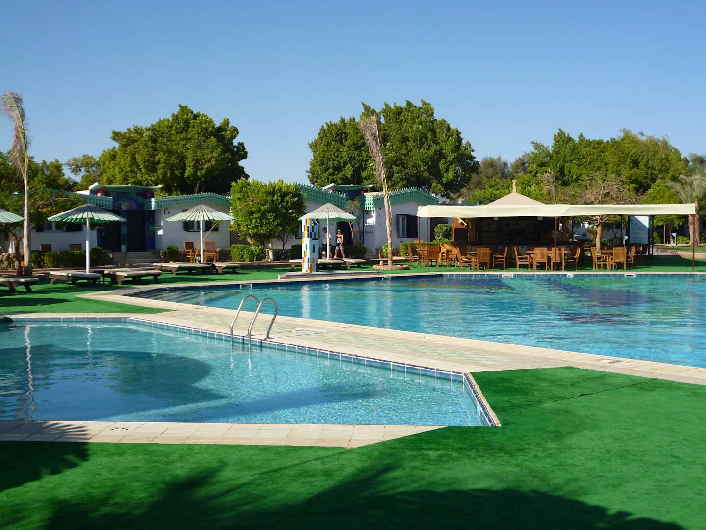 Sauberer Pool mit Kunstrasen-Liegewiese