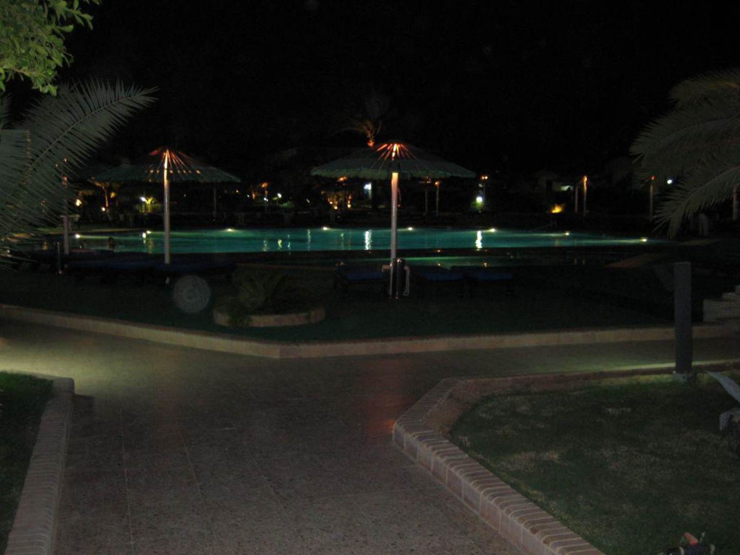 Die Hotelanlage ist nachts beleuchtet und schön anzusehen
