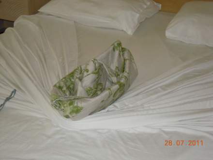 Wenn nicht Handtücher arrangiert wurden dann die Tagesdecke