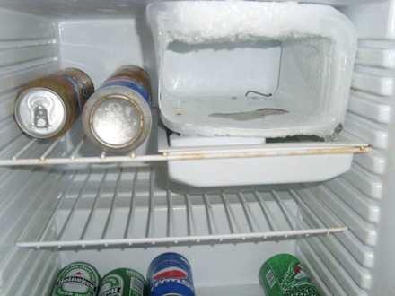 versiffter Kühlschrank mit angerosteter Dose