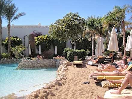 Sandstrand in Pool-Landschaft integriert