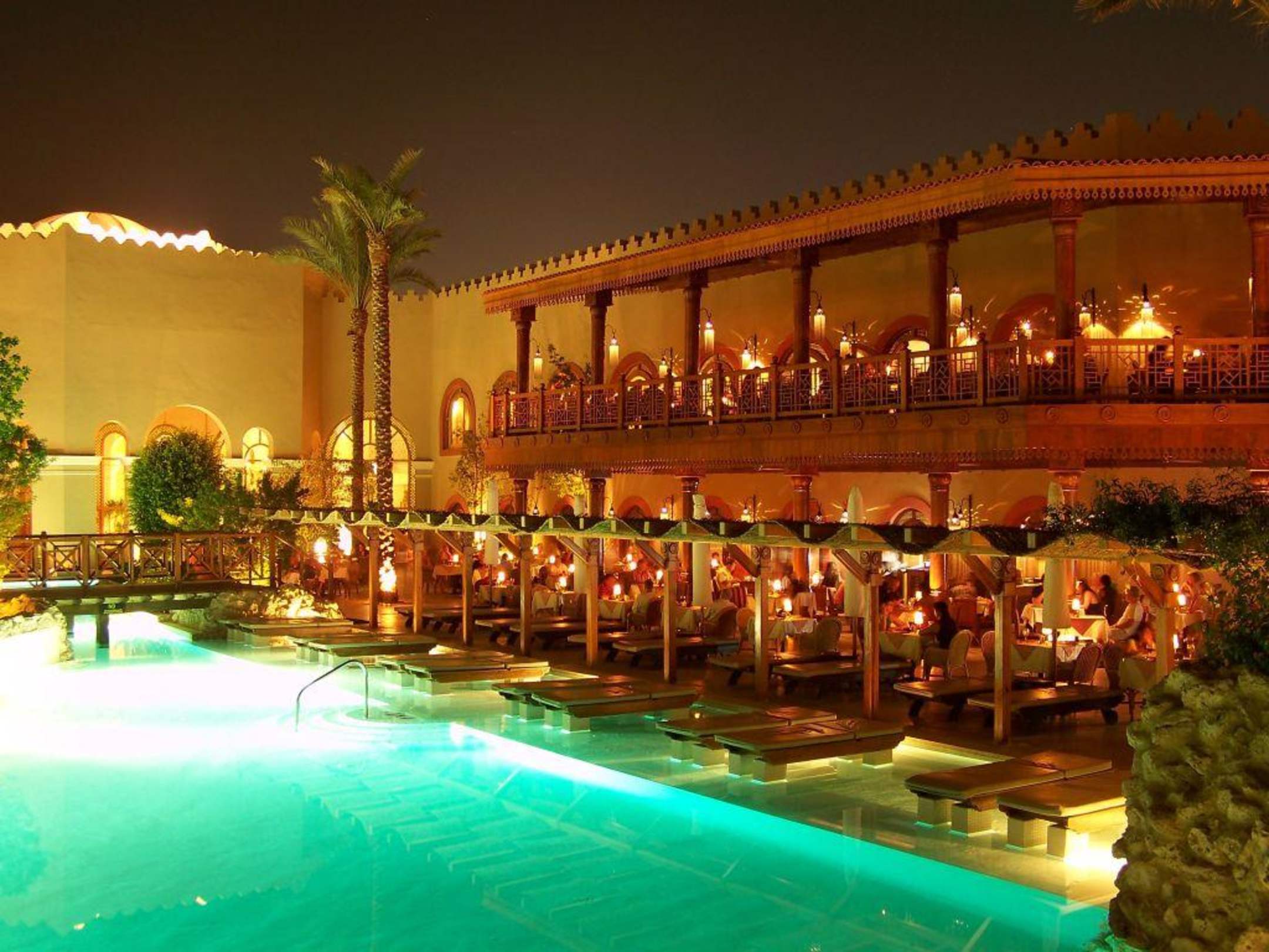 Abendlicher Blick auf die Hauptrestaurants