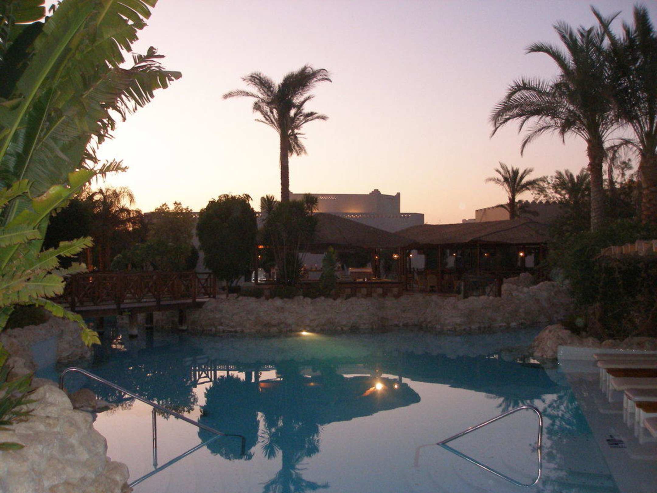 Poolanlage in der Dämmerung