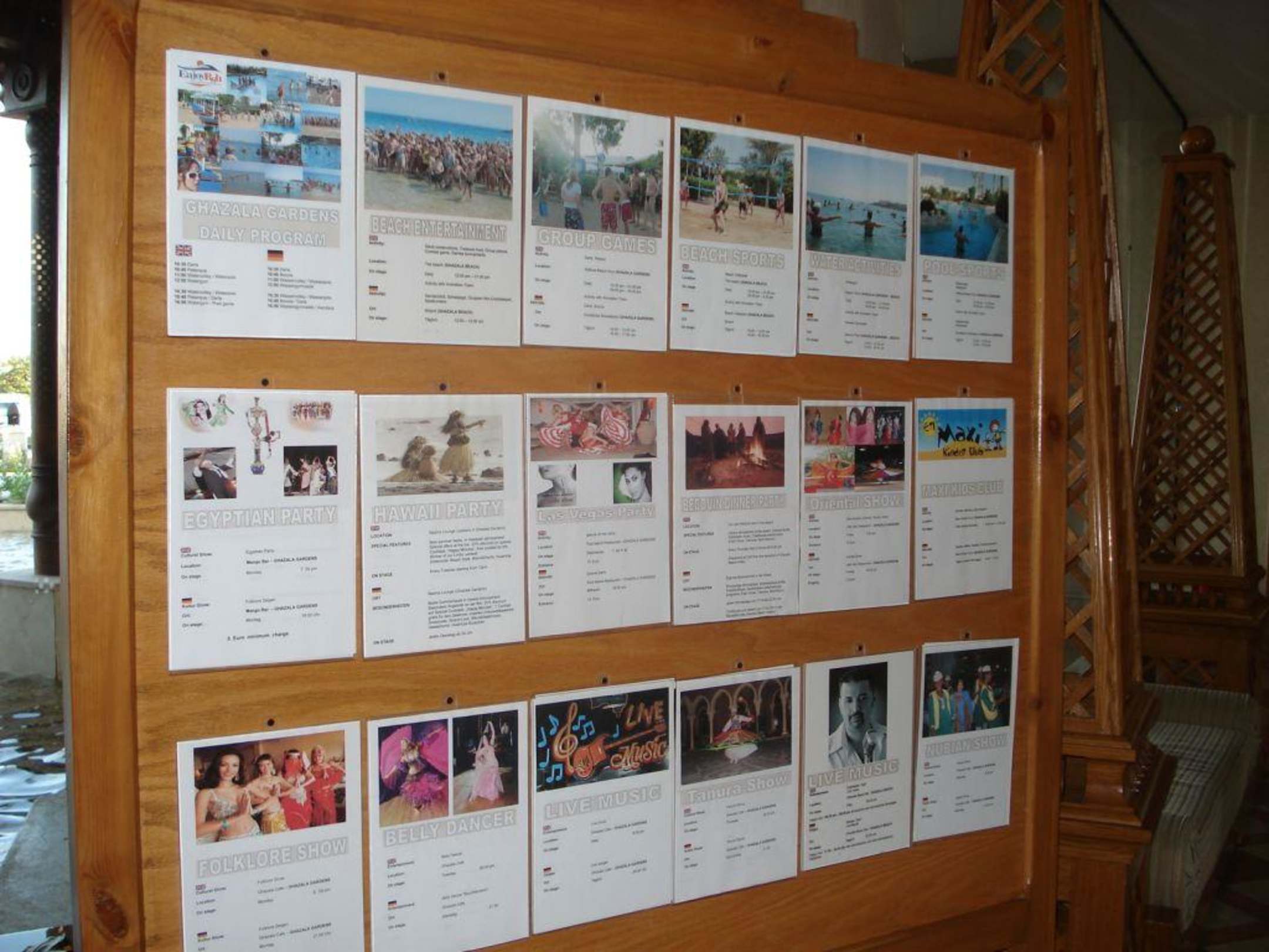 Tafel mit Unterhaltungsprogramm in der Lobby