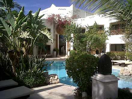 Pool mit Hotelgebäude