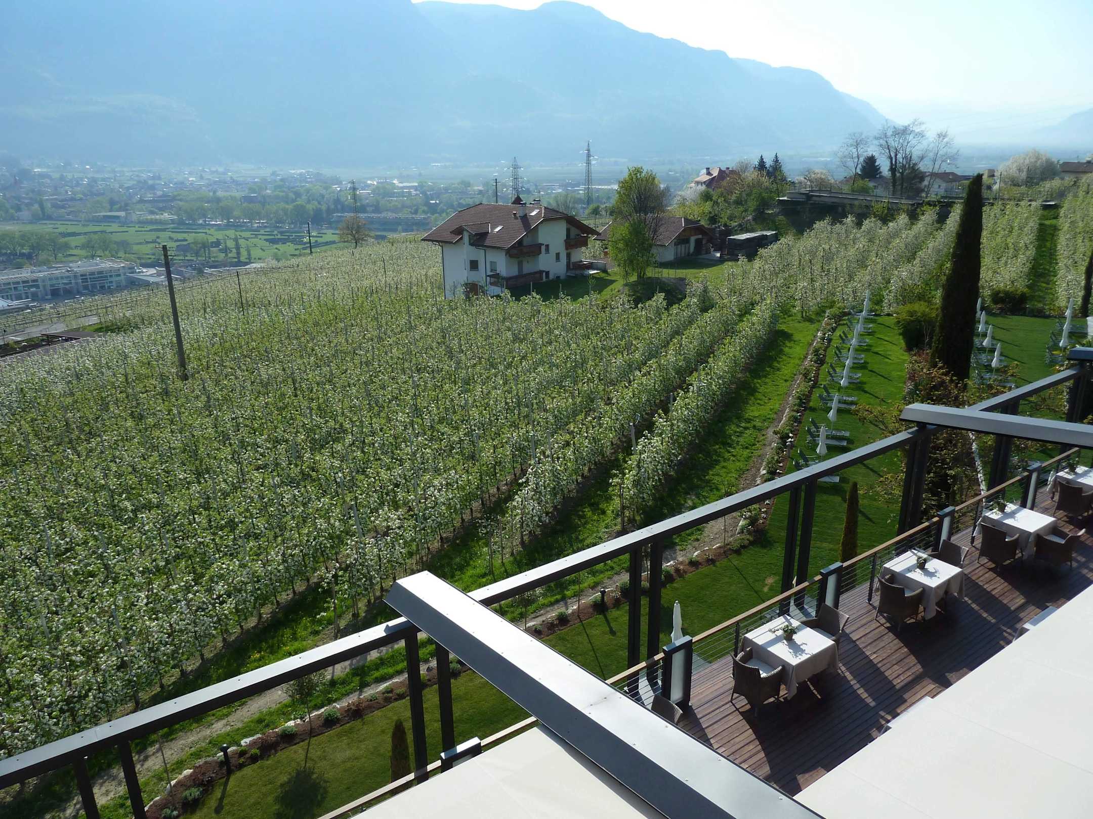 Blick vom Balkon auf die Apfelhaine
