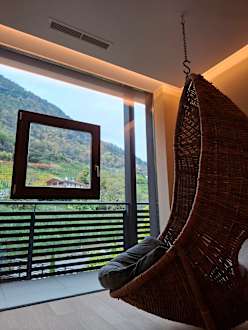 Hängesessel im Ruheraum neben dem Dampfbad
