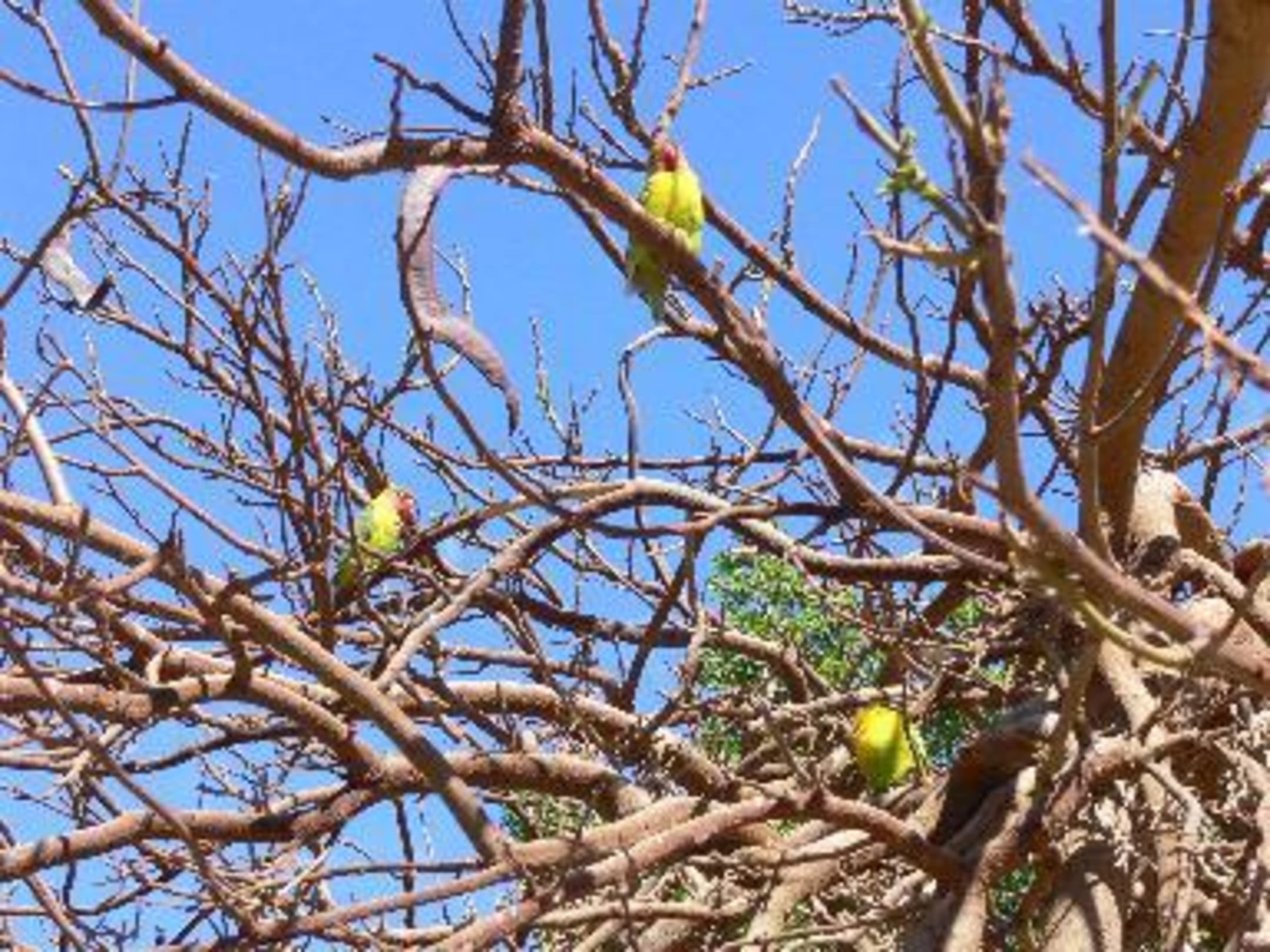 Dem ein oder anderen Vogel gelingt auch schon mal die Flucht aus der großen Voliere. Aber bei der guten Verpflegung finden alle wieder zurück...