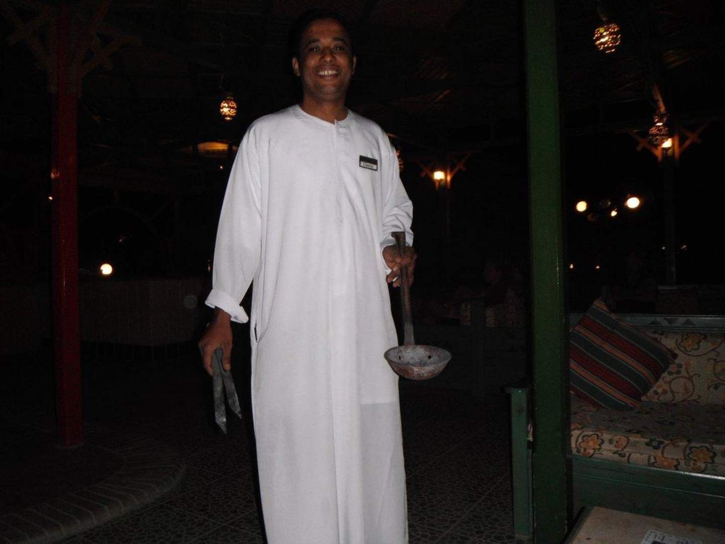 Unser ShishamannUsama kümmert sich in der Shishabar um die Shishapfeifen, bringt Tabak und füllt immer wieder die Kohlhe auf.