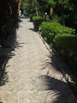 Neu gefliester Weg durch die Anlage
