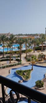 Blick vom Balkon auf die Poolanlage