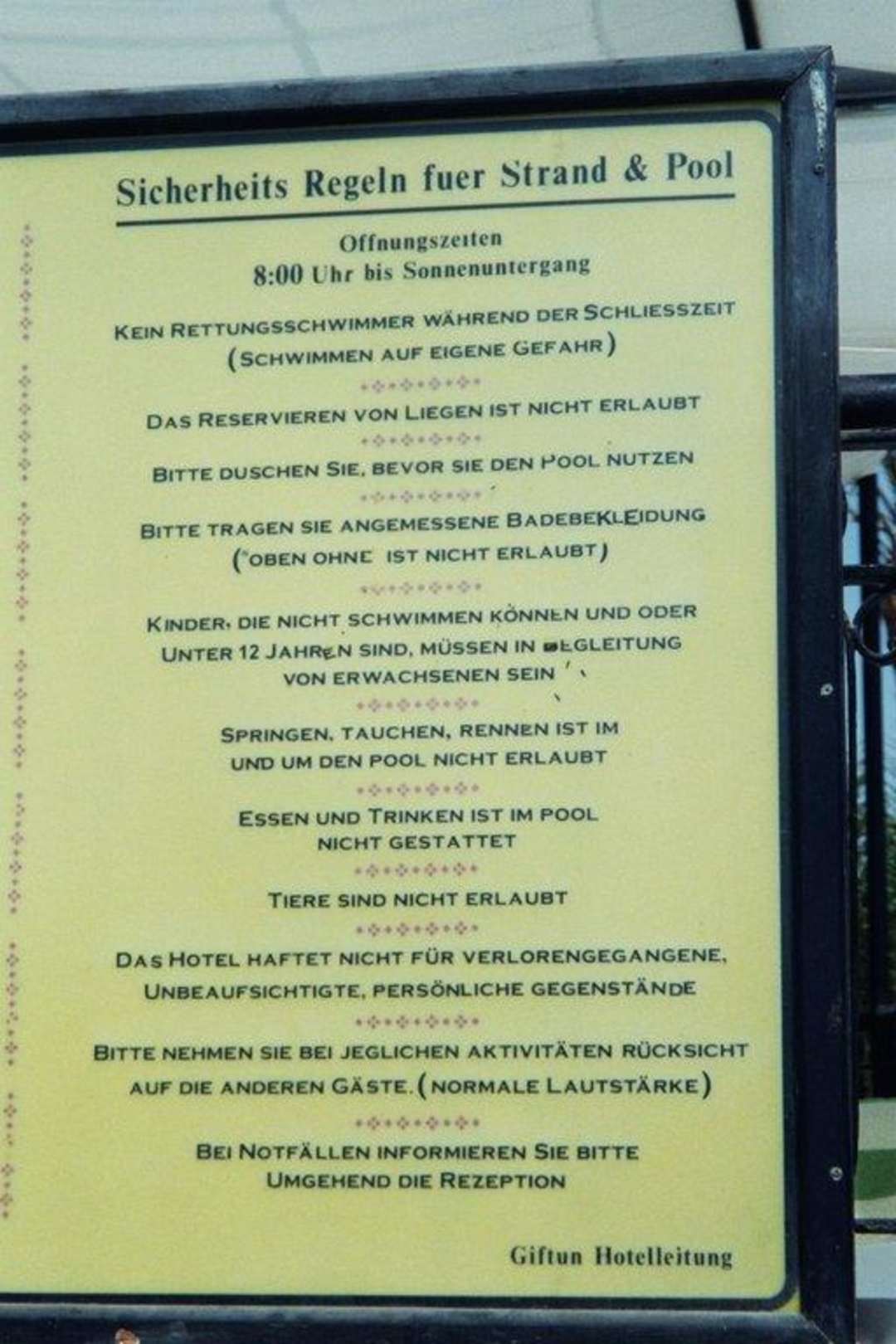 Der Aushang am Pool...Laufen am und im Pool verboten... :-)