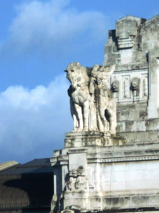 Detail der Fassade des Bahnhofs