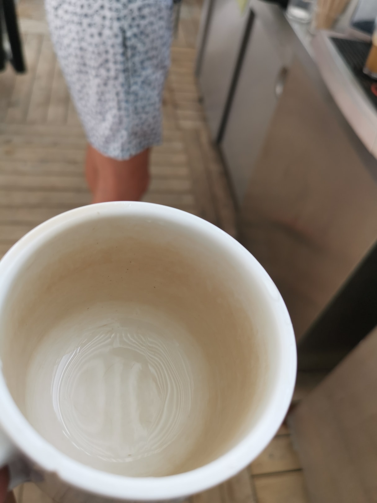 Kaffeetassen am Strandrestaurant. Innen braun und abgenutzt. Nicht sauber.