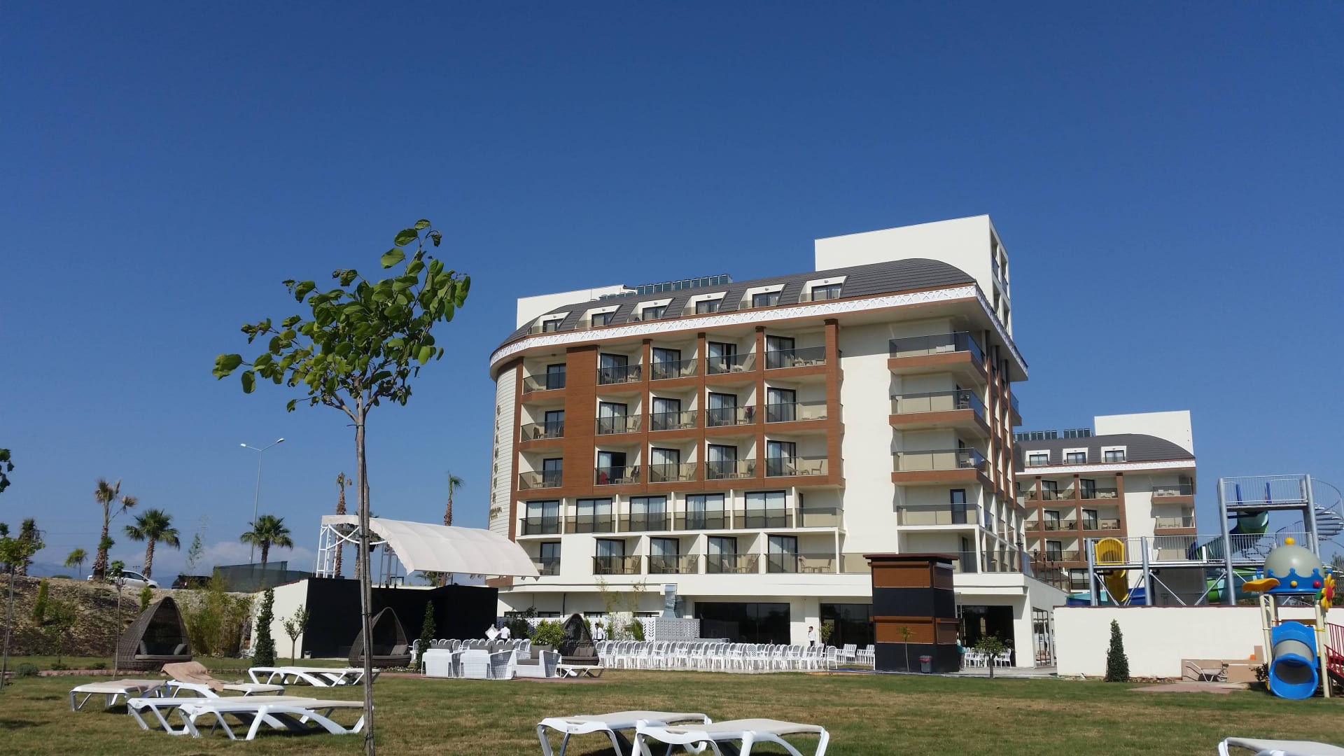 Blick über Liegewiese zur Bühne