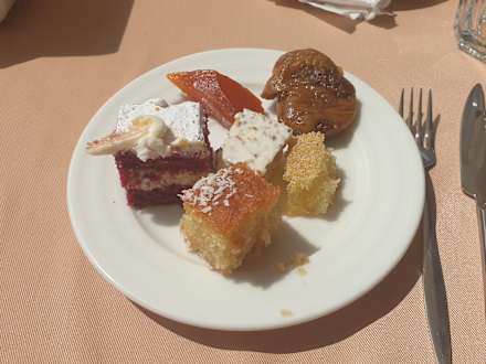 GastroNachspeisen wie Kuchen, Baklava, getrocknete und marinierte Früchte, Milchreis, Pudding usw
