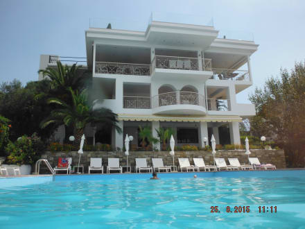 Der Speisesaal vom Pool aus gesehen