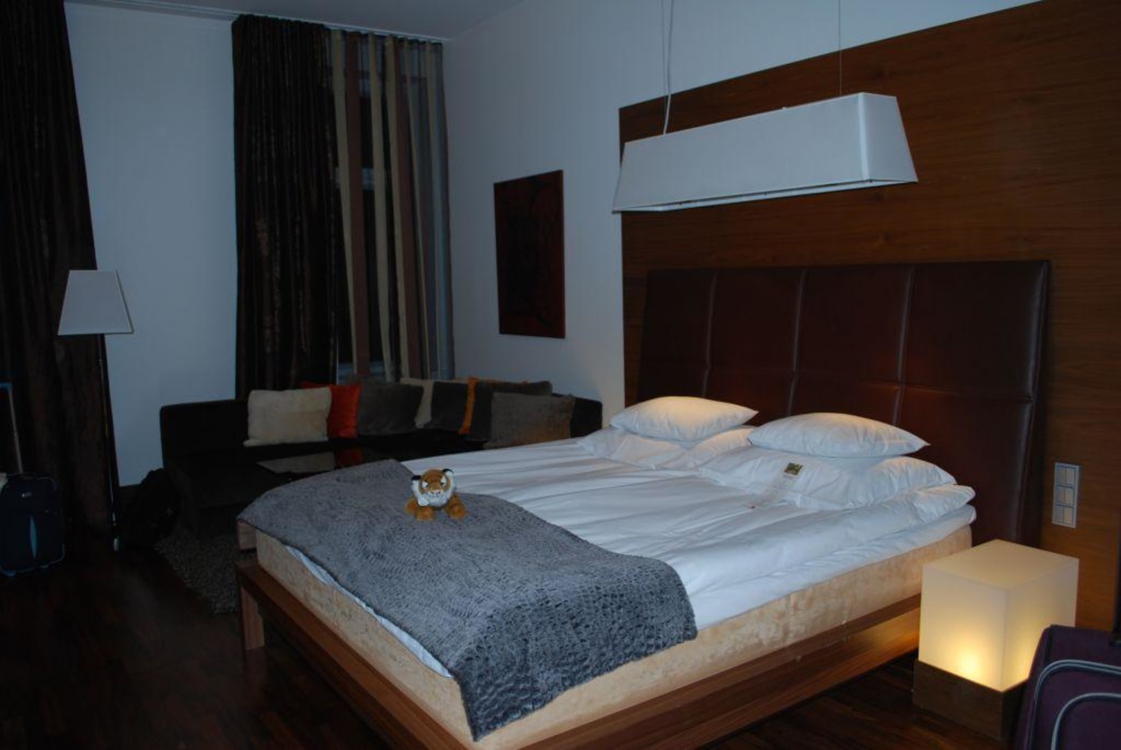 Bett im Deluxe Room. Sicht von der Tür aus.