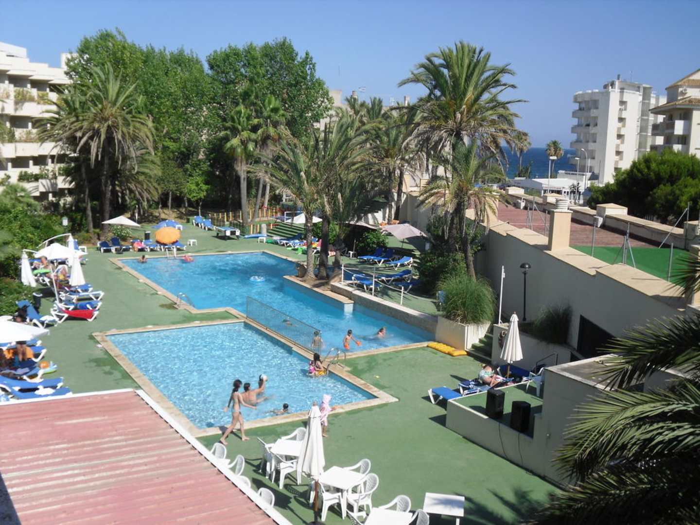 Balkon mit Pool- und Meerblick