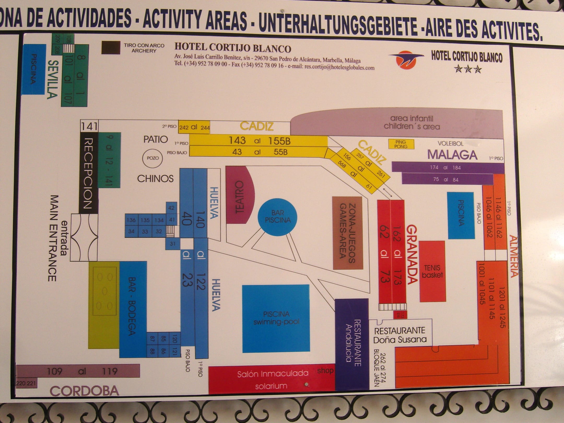 Aufbau HotelanlageBei der Ankunft erhält jeder Gast (zusätzlich zur Hausordnung) noch einen Plan der Hotelanlage.