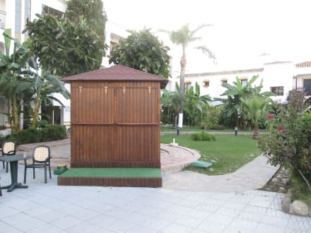 Geschlossene Bar in der Hotelanlage