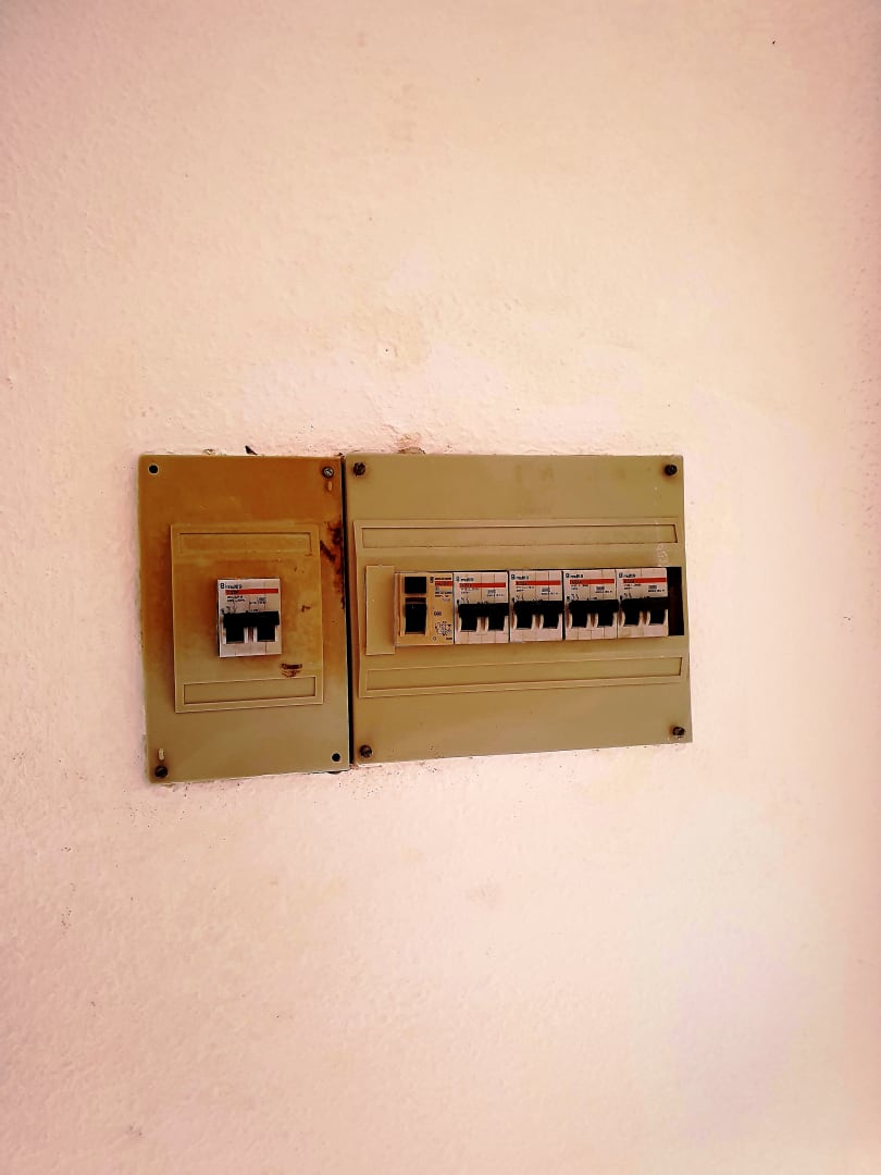 Rostiger Sicherrungskasten. Lebensgefährlich