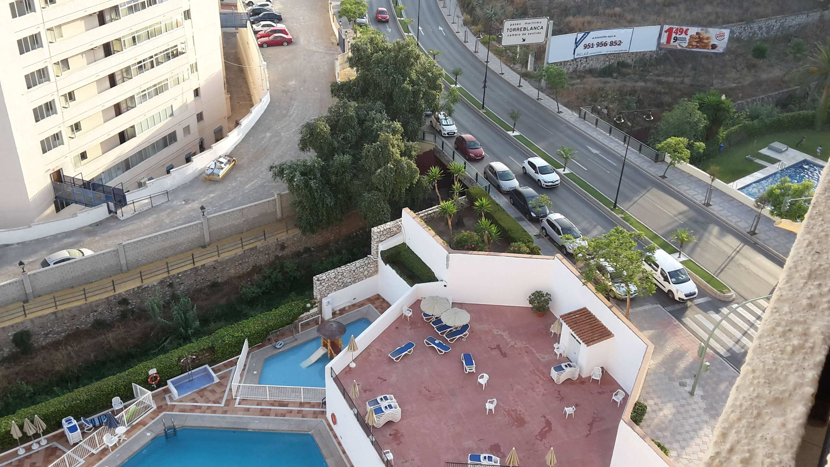 Widok z balkonu na część basenu