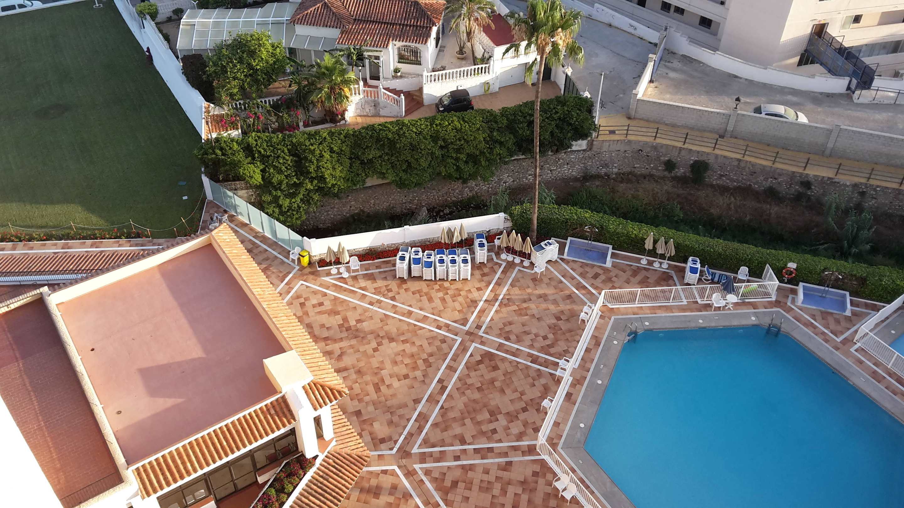 Widok z balkonu na część basenu