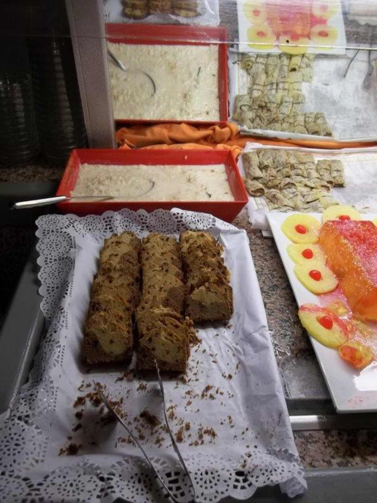 Nachtisch Kuchen, Pfannkuchen, Griessbrei und Wackelpudding