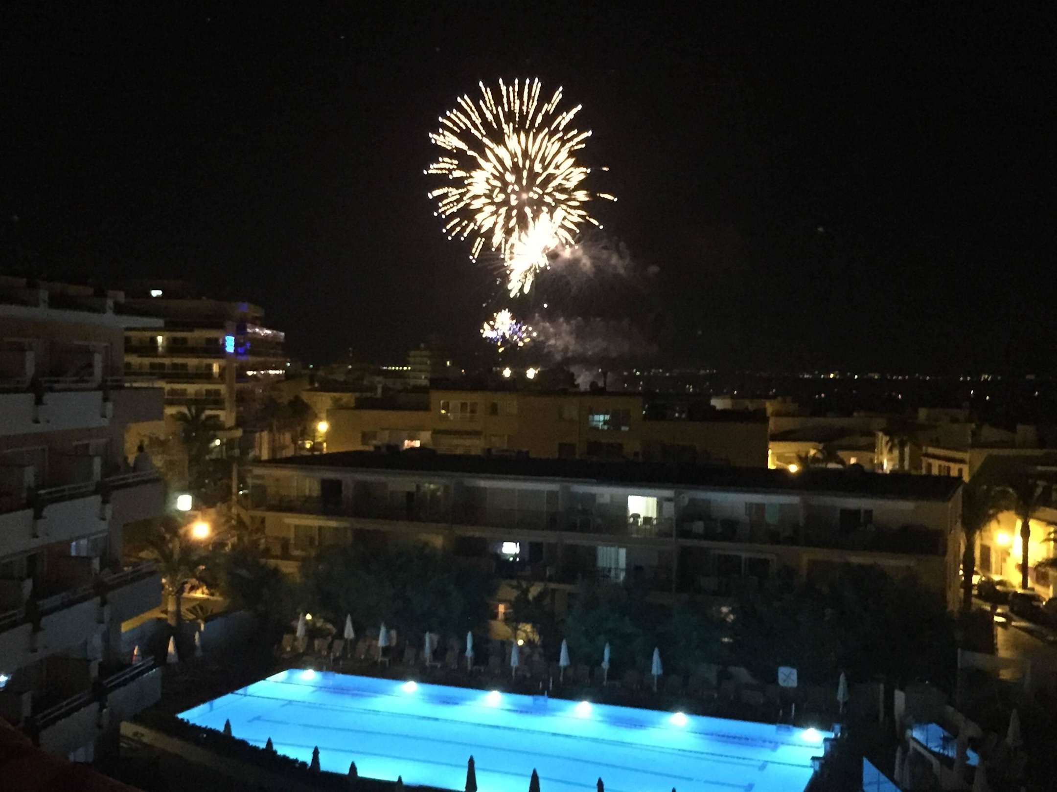 Pool mit Feuerwerk