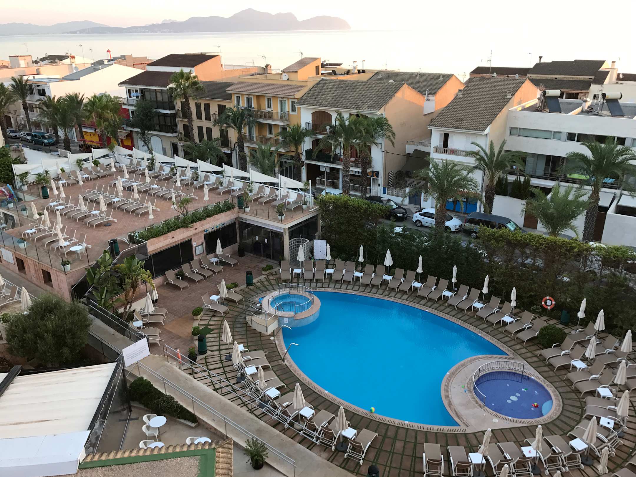 Blick vom Balkon auf die Hotelanlage