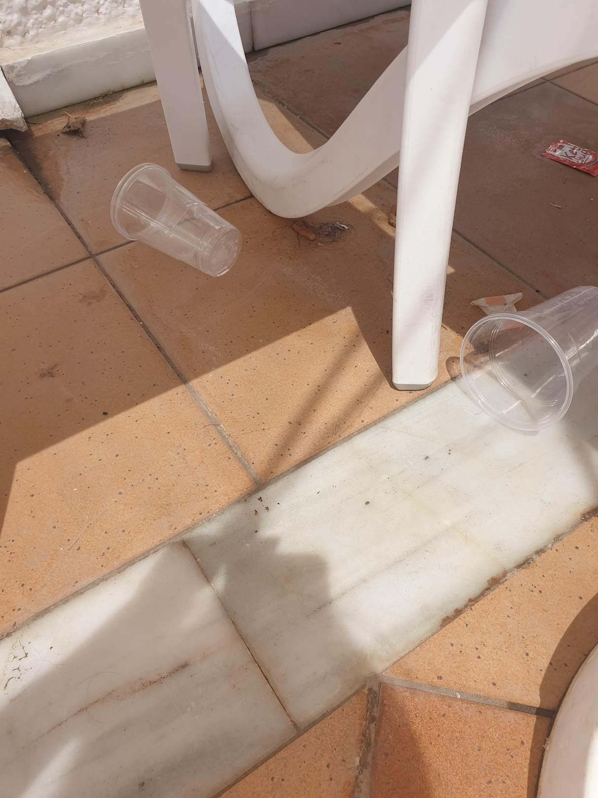 Kippen.Platikbecher.Haare am Pool