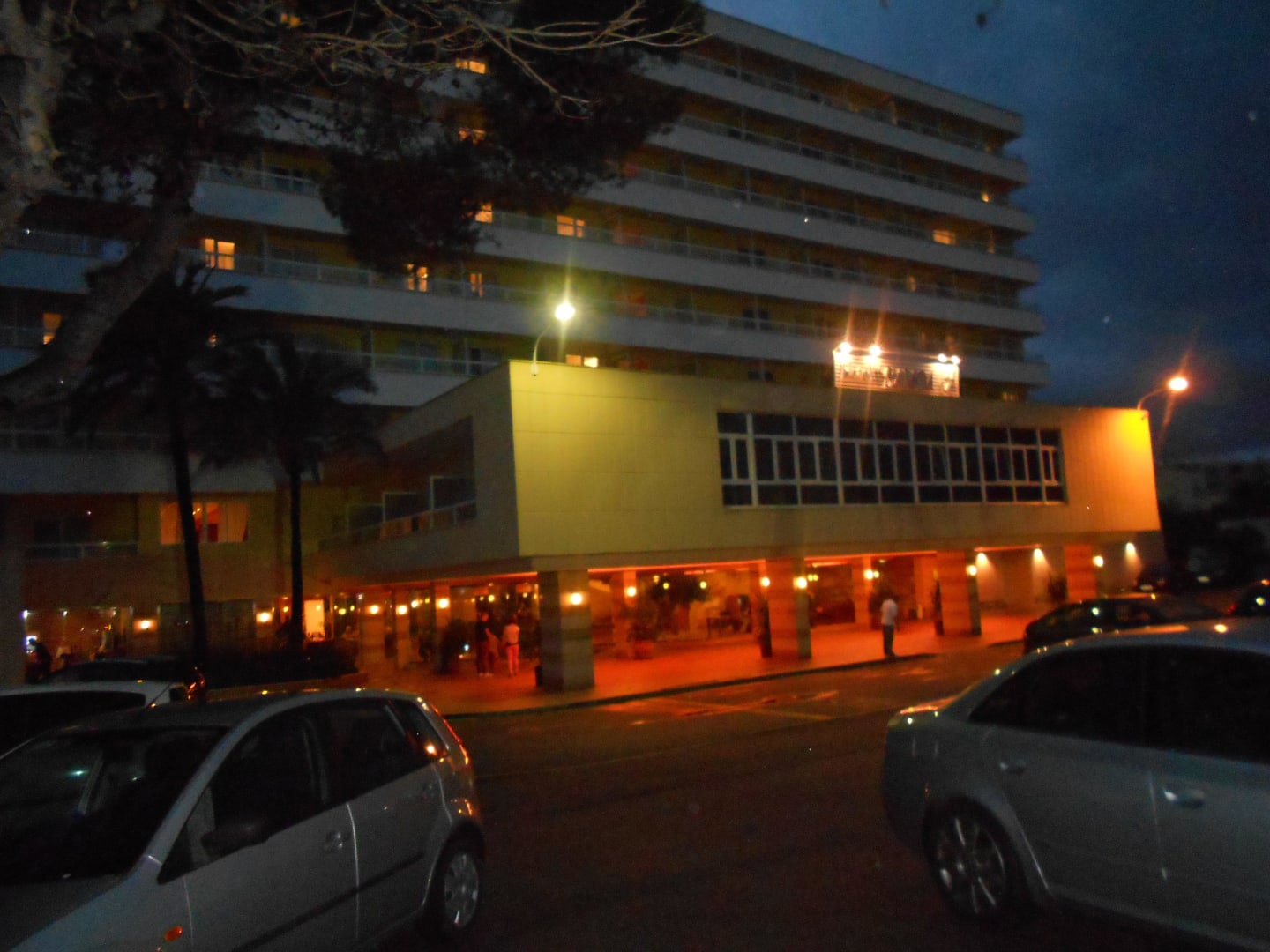 Hotel nocą, od strony ulicy