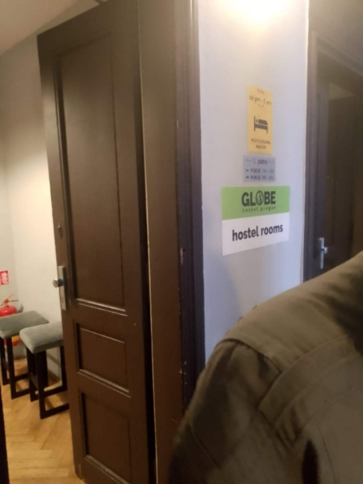 Eingang zum Globe Hostel Prag im Obergeschoss