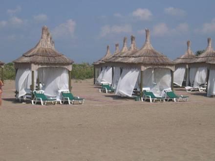 Wer sich etwas Abgeschiedenheit wünscht, kann Strandpavillons mieten