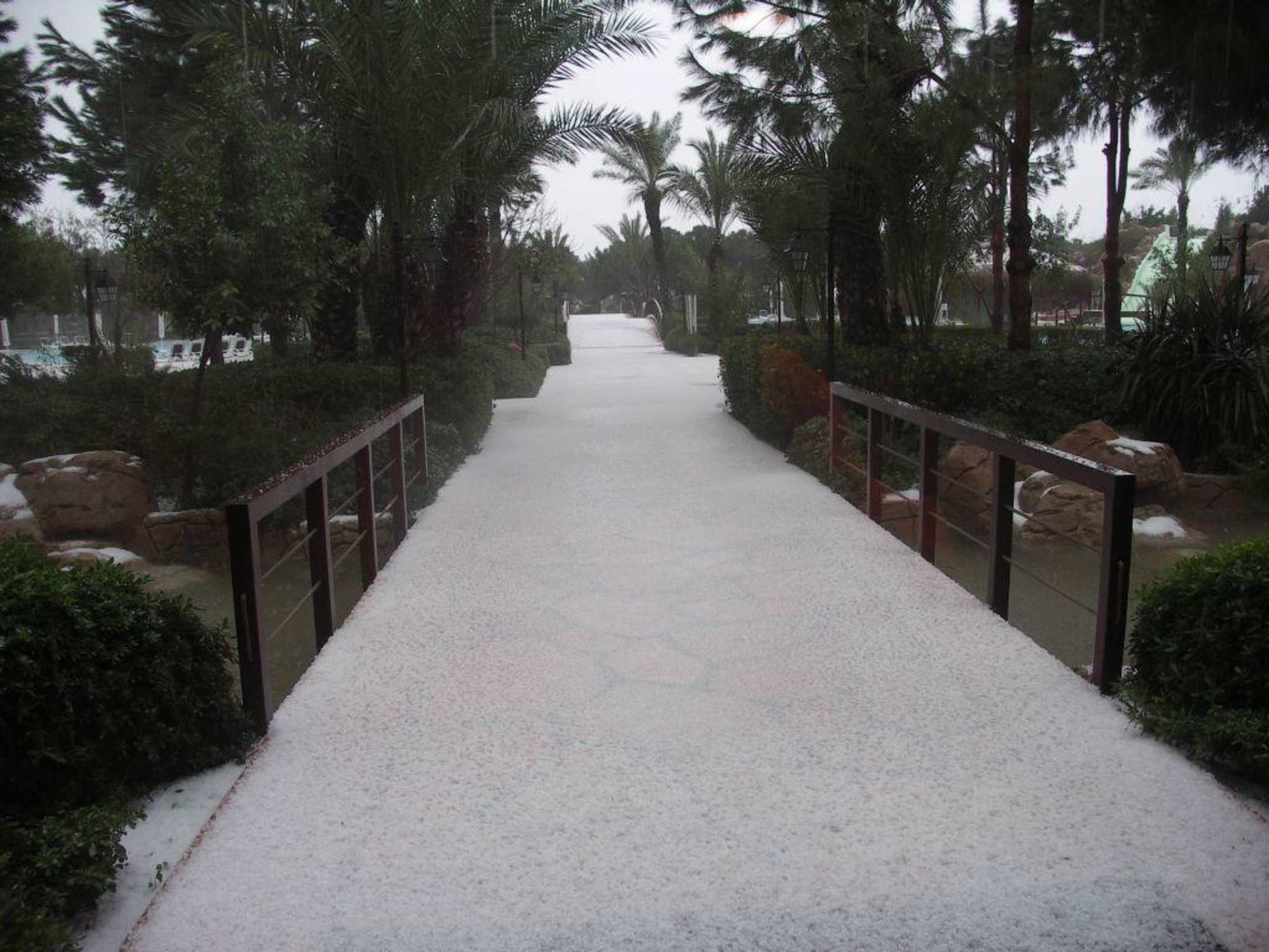 Das Gloria in Weiß10 cm Hagel am 28.02.2007.Golf ist out. Die Langlaufpiste im Garten ist angesagt.