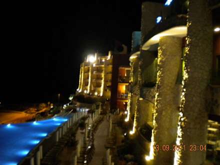 Pool und Hotel bei Nacht