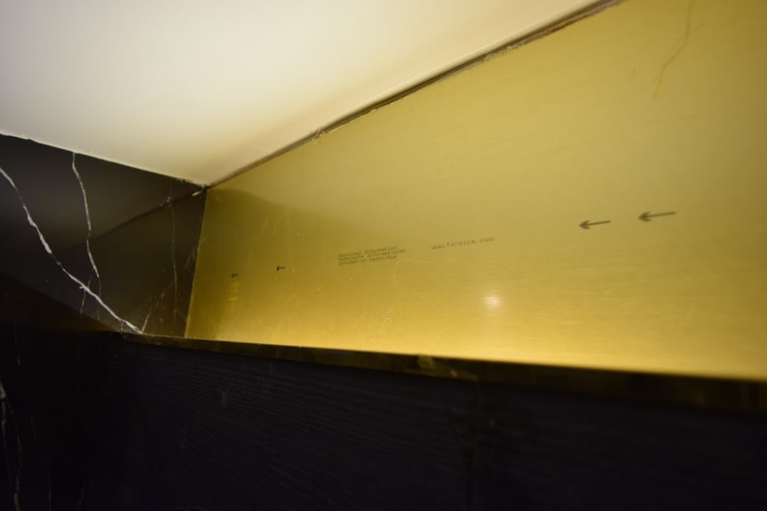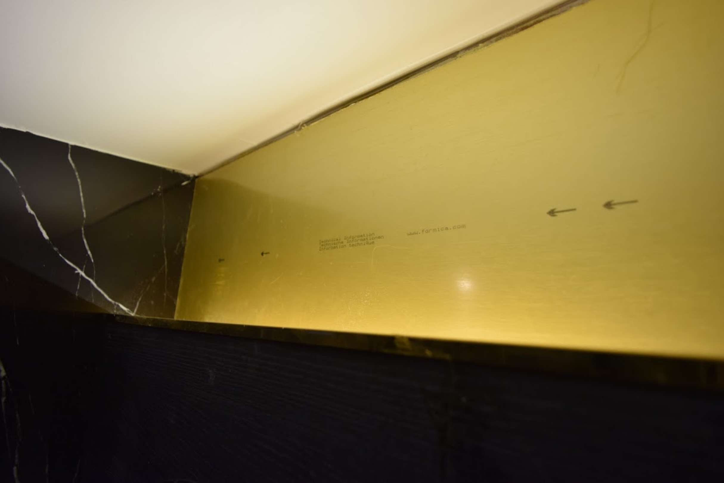 ZimmerSchlechte Verarbeitung im Zimmer - Installationshinweise auf einer wohl falsch herum verklebten Leiste im Bad