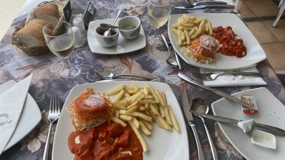 Mittagessen nach Auswahl, Curryhuhn mit Sticks