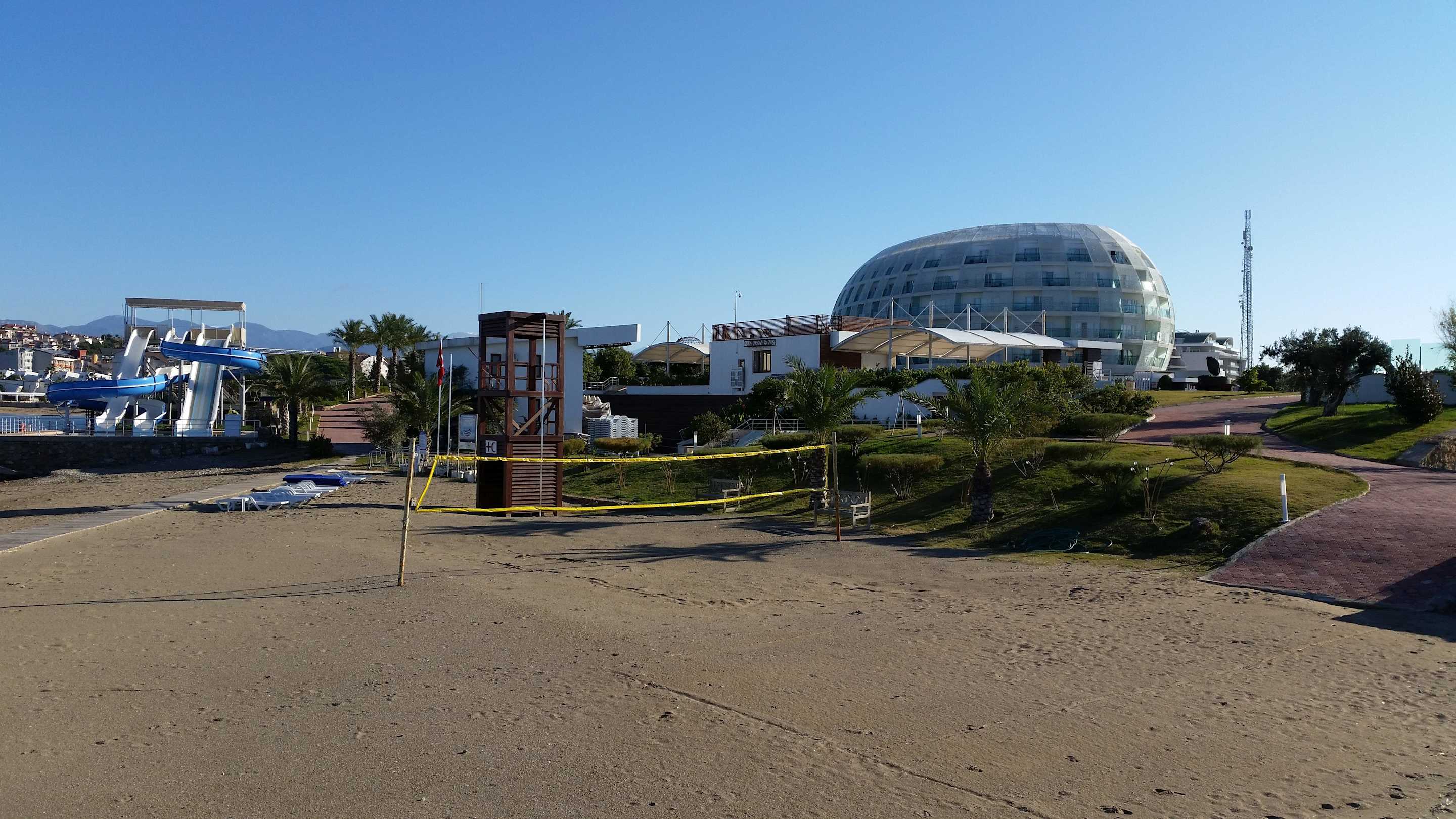 Blick vom Strand zum Hotel