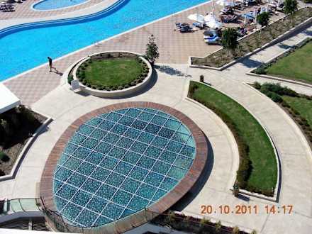 Ausblick 5.Etage PoolblickDas Glaspodest ist begehbar und ist das Dach vom SPA Bereich, Innenpool