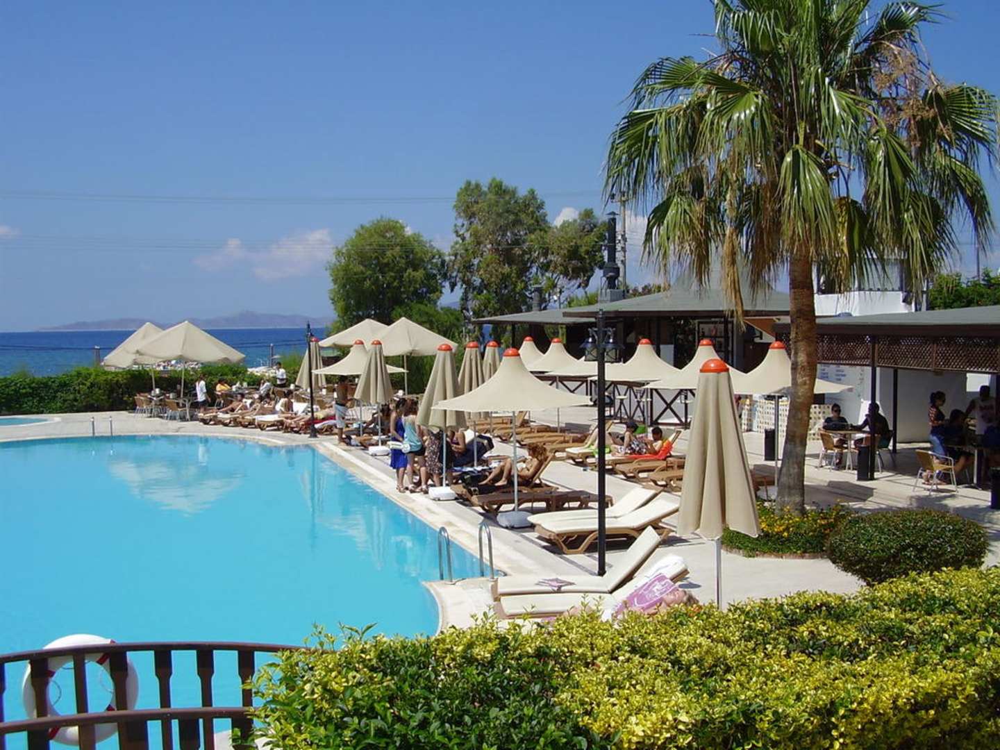 Pool mit Beachbar und Blick auf das Meer