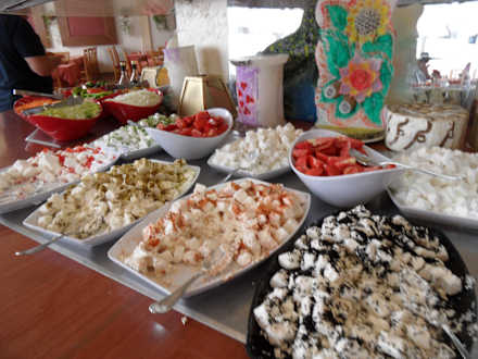 Frühstück im Hauptrestaurant: Feta in diversen Variationen und das Salatbüffet
