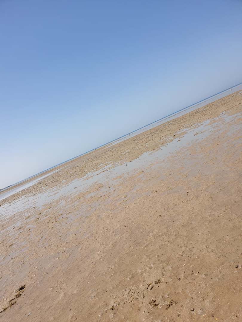 Strand bei Ebbe, das tiefe Wasser ist immer über den Steg erreichbar